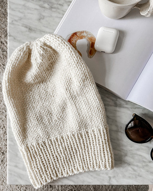 The beginner's hat is a knitting pattern where the language and explanations are made extra beginner-friendly, and the techniques are kept very simple. The hat is one size.