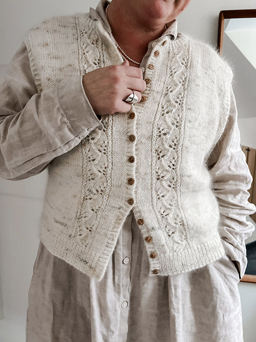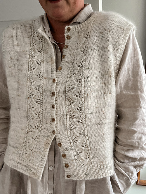 Sakura Open Vest is a versatile and classic top that can be used as both a vest and a top. Knitted in a summer-friendly yarn, it makes a cute summer top, while you can also use it as a vest or sleeveless cardigan over dresses, shirts, etc.